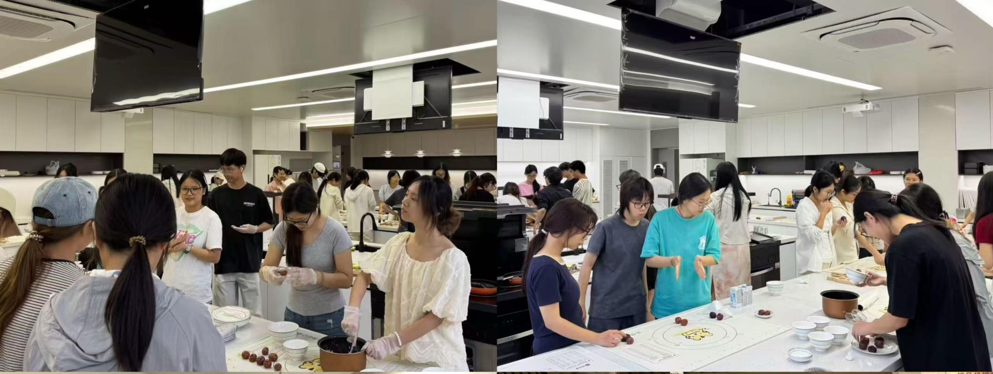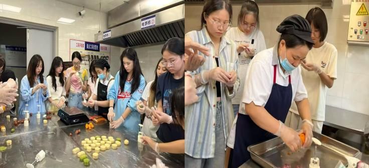 饮食服务中心与经济学院家政专业、毫末书院等学院联手,开展月饼制作教学体验活动。9 月 28 日,一场融合传统节日与劳动教育的特色活动温情启幕 —— 食堂面点师化身 “授课老师”,走进家政学专业课堂传授月饼制作技艺;
