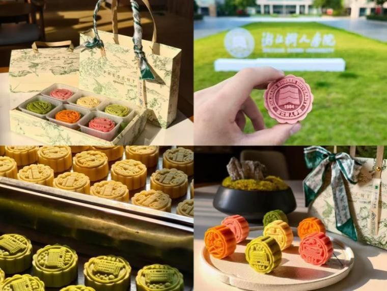 浙江树人学院食源月饼,以缤纷色彩玩转美学想象,每一口都是绵密温柔,将校园情怀藏于饼间:校徽、校训镌刻初心,图书馆等纹样承载书香,餐厅食源 logo 传递美味记忆,让舌尖品味甜蜜时,也与校园文化撞个满怀,既是味蕾盛宴,亦是独属校园的心意信物。