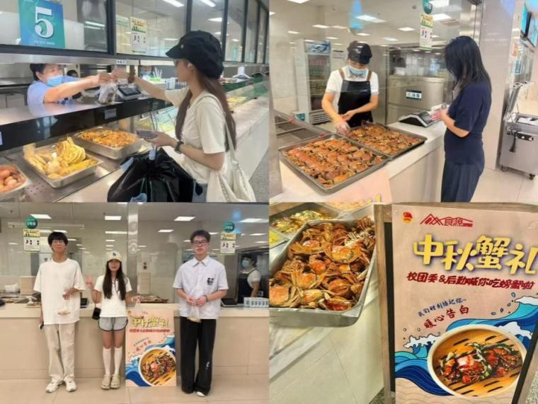 校团委携手饮食服务中心在中秋节前通过后勤官方微信公众号推出 “中秋蟹礼” 主题抽奖活动,活动上线仅 24 小时便吸引超 1000 名师生参与。中秋节当天,在各食堂设立专属领取点,为 200 名幸运师生免费发放新鲜肥美的中秋螃蟹。这份满载心意的 “惊喜礼物”,让师生们感受到传统节日的独特乐趣。