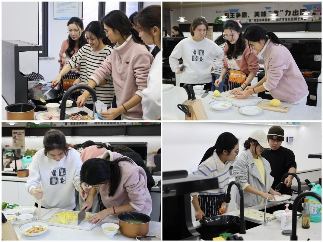为助力学生展现最佳水平,饮食服务中心总厨与厨师长们现场担任技术导师,从食材处理的基础技法到火候掌控的核心秘诀,从调料搭配的黄金比例到家常菜的风味精髓,厨师导师们倾囊相授。指导过程中,厨师们不仅传授烹饪技能,更分享多年积累的饮食智慧与劳动感悟,让学生在学习厨艺的同时,体会劳动的价值与生活的温度。不少学生表示:"厨师师傅的指导特别实用,从怎么选土豆到怎么让土豆丝脆嫩爽口,一步步讲解得特别细致,让我们不仅学会了一道菜,更掌握了可迁移的烹饪技能。"