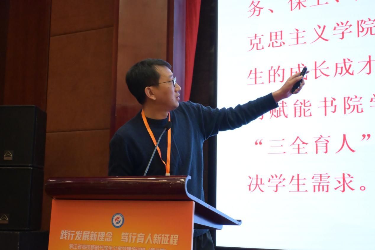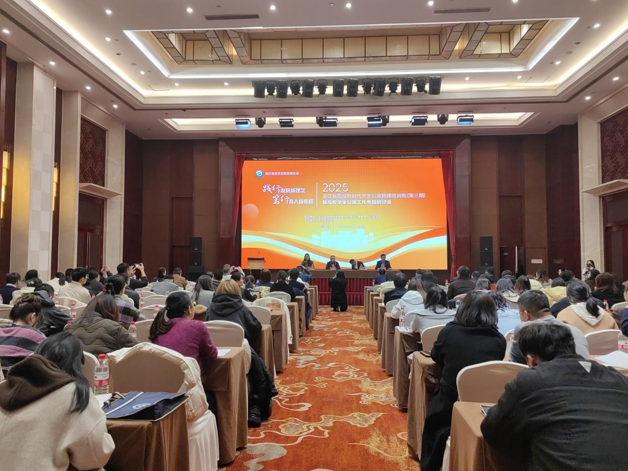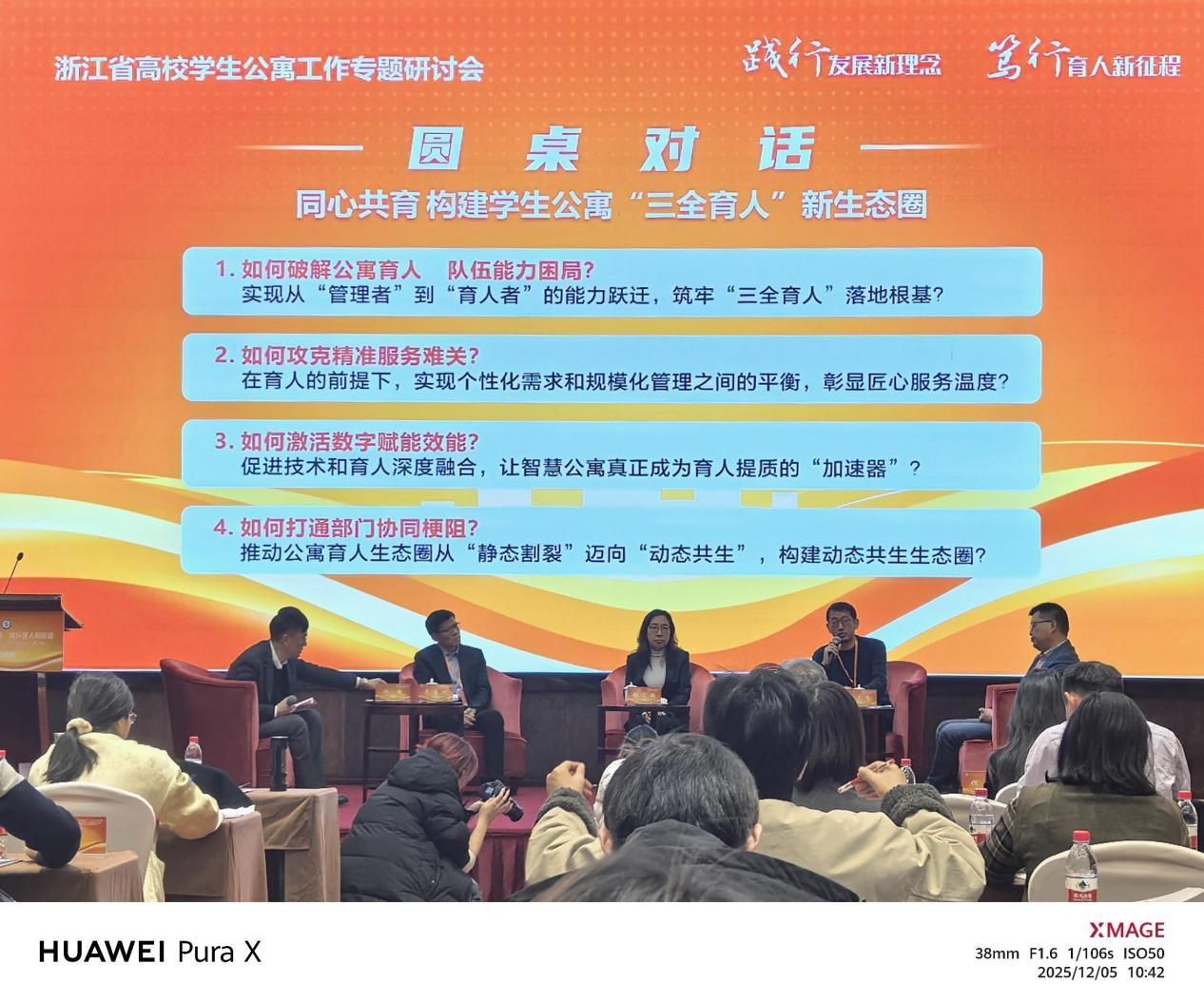 12月4日至5日,浙江省高校新时代学生公寓管理培训班(第三期)暨专题研讨会在诸暨顺利举办。本次会议以“践行发展新理念,笃行育人新征程”为主题,汇聚全省高校后勤公寓育人工作骨干,通过专题培训、实践分享、圆桌对话等形式,共探学生公寓“三全育人”高质量发展路径。我校后勤保障处党总支书记张卫东受邀参会,作为高校代表分享育人实践成果,并受邀参与圆桌对话,为行业痛点问题提供“树人方案”。