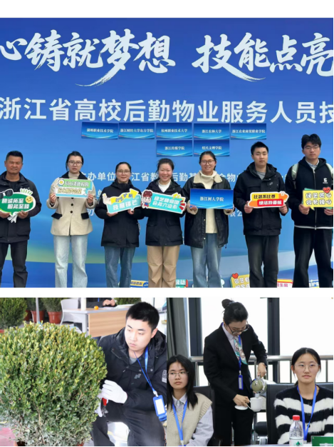 近日,由浙江省教育后勤基建协会主办的第八届浙江省高校后勤物业服务人员技能比武大赛在浙江金融职业技术学院绍兴校区圆满落幕。全省46所高校同台竞技,我校后勤代表队凭借扎实的专业技能与出色的团队协作,综合排名跻身前十,成功斩获团体银奖,另有三位参赛同志荣获个人铜奖,为学校赢得了荣誉。