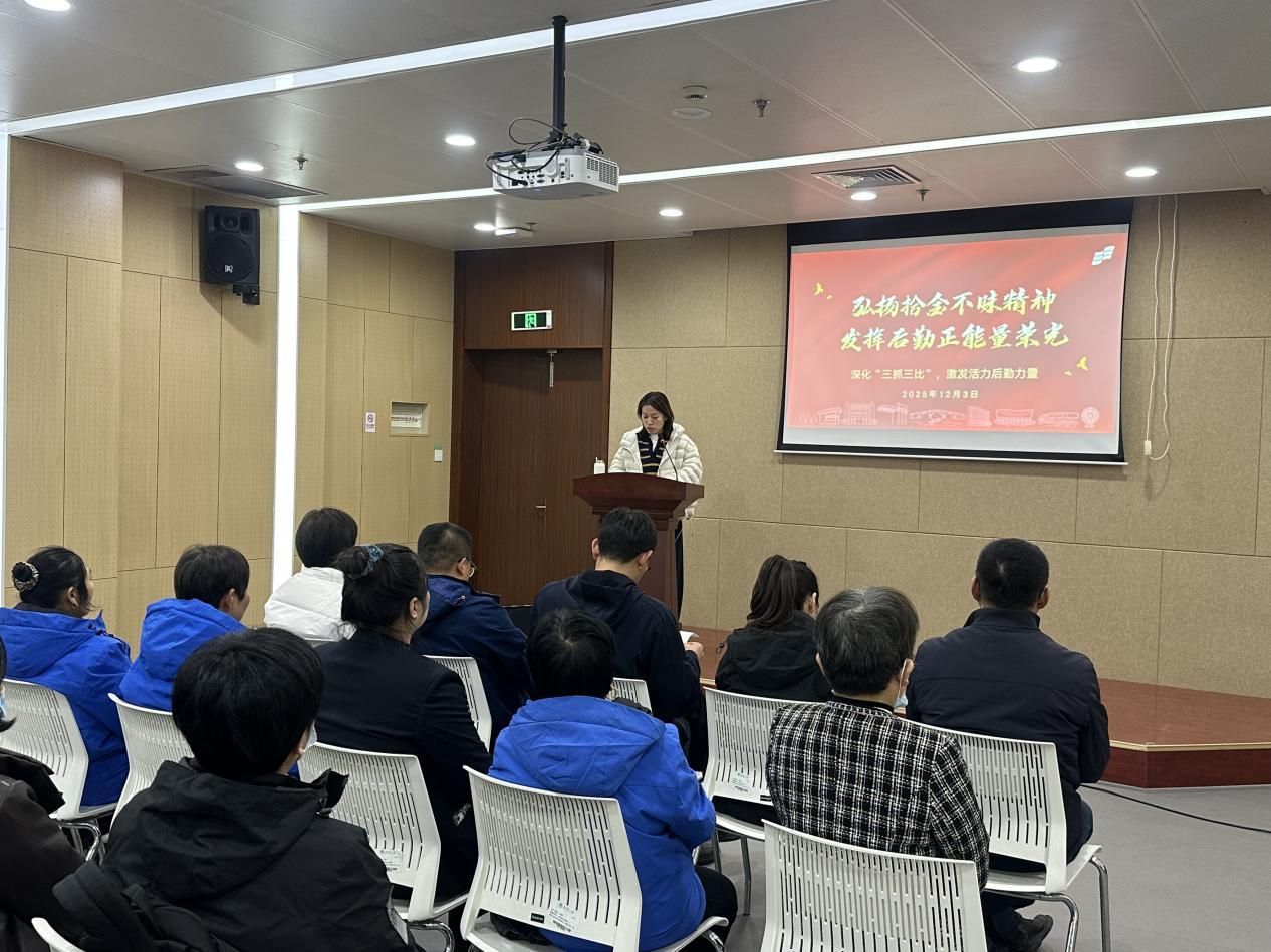 表彰结束后,后勤保障处党总支书记张卫东作总结讲话。他对获奖员工给予高度肯定,强调拾金不昧是中华民族的传统美德,更是后勤服务行业的精神底色,希望获奖员工珍惜荣誉、再接再厉,同时他就学习先进典型提出三点方向:一要弘扬“把小事做到极致”的工匠精神,在日常工作中精耕细节,切实做到“让师生满意”;二要践行“责任在肩、冲锋在前”的担当精神,在关键时刻勇于行动,全力保障校园安全稳定;三要培育“互助友爱、团结协作”的团队精神,加强岗位协同,形成高效有序的工作合力。