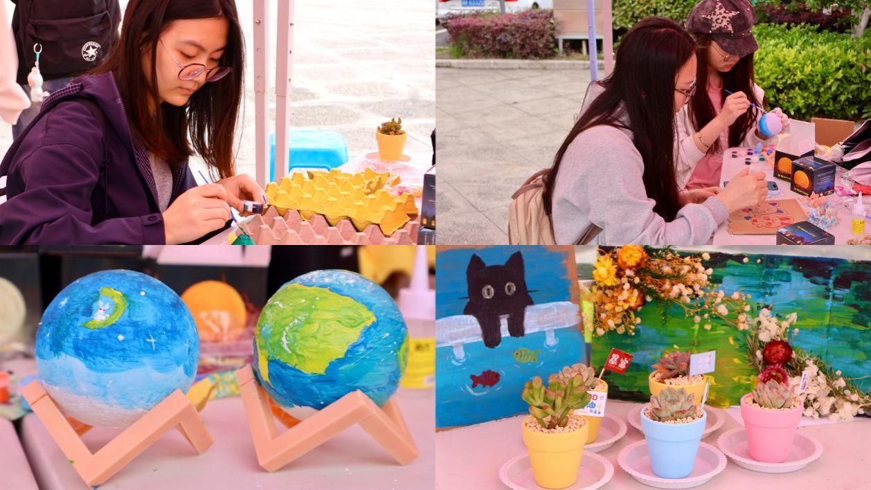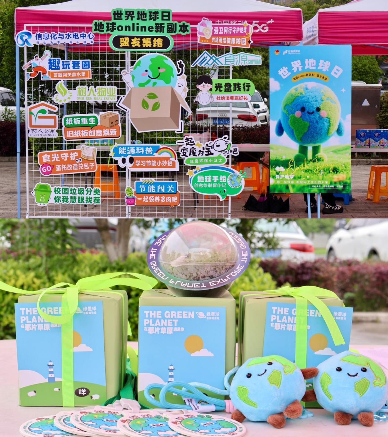 活动现场氛围热烈,广大师生积极参与各项实践,用创意让废旧物品焕新,以行动践行光盘节约,在答题闯关与科普学习中提升环保意识。参与者完成任务即可收集盖章,集齐一定数量印章还可兑换多肉植物、餐券、手绘材料包等礼品,终极抽奖环节送出地球挂件、微景观盆栽等专属地球日礼品,进一步提升了活动参与热情。