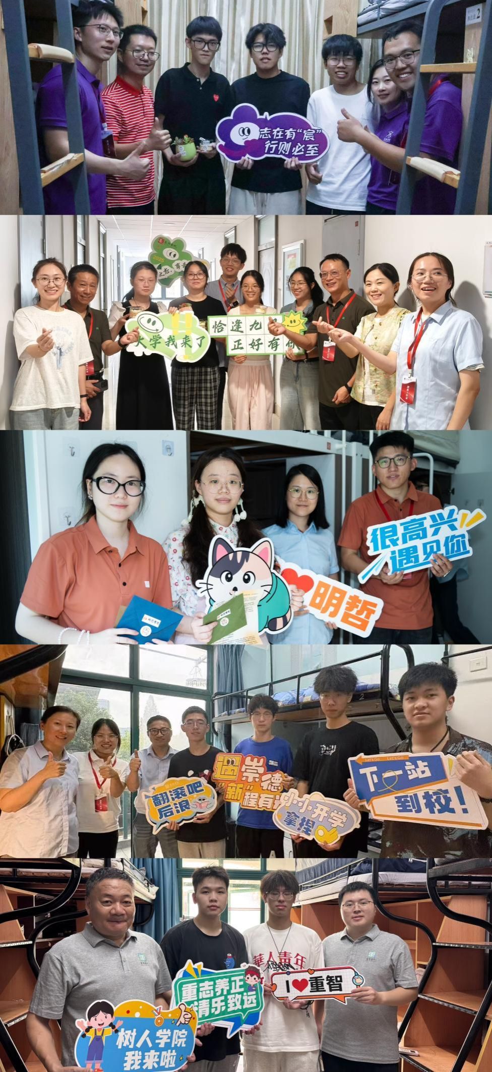 宿区主干道、门厅等醒目位置通过精心布置,营造出浓厚的欢迎氛围,设置清晰指引牌、通过电子屏滚动提示,用暖心的文字和生动的图画缓解新生初来乍到的陌生感,让他们从踏入公寓的那一刻起,就能感受到温馨亲切的氛围。