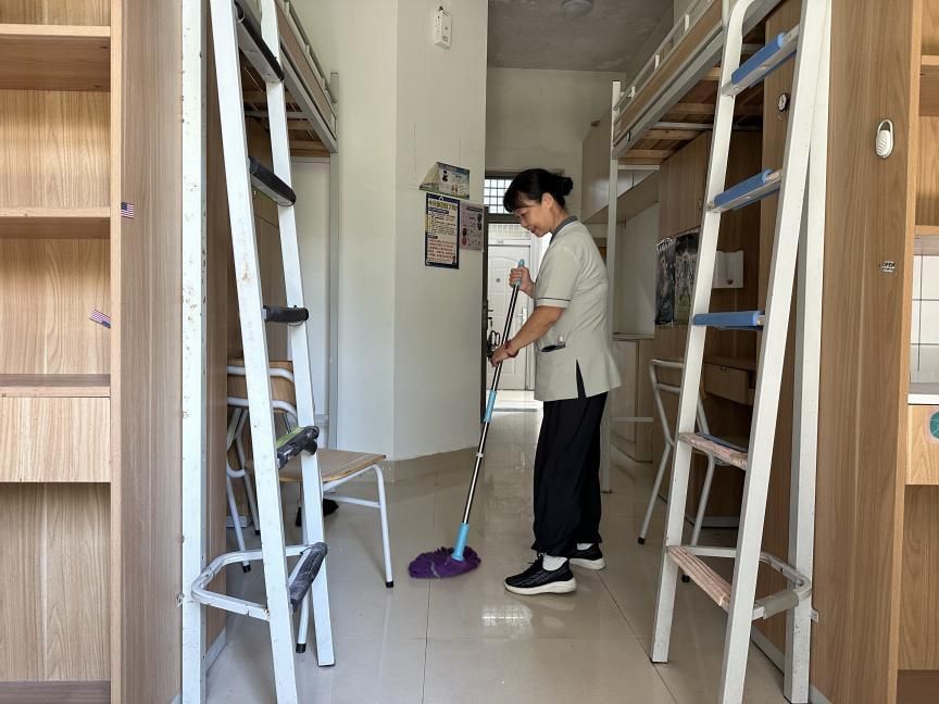 为确保迎新工作高效有序,公寓服务中心启动了全面的准备工作。一是寝室焕新与硬件维护:公寓管家对新生房源逐一排查并集中整修,完成了墙面粉刷、家具检修、水电设施维护等多项工程;二是深度保洁与设备消杀:组织保洁人员对新生房间及公共区域进行多轮彻底清扫,敦促第三方单位开展设施设备排查,确保房间整洁、设施完好;三是精准服务特殊需求:积极与书院沟通,提前获取20余名特殊身高学生信息,及时上报并完成加长床铺的改造工作,切实提升新生居住舒适度。