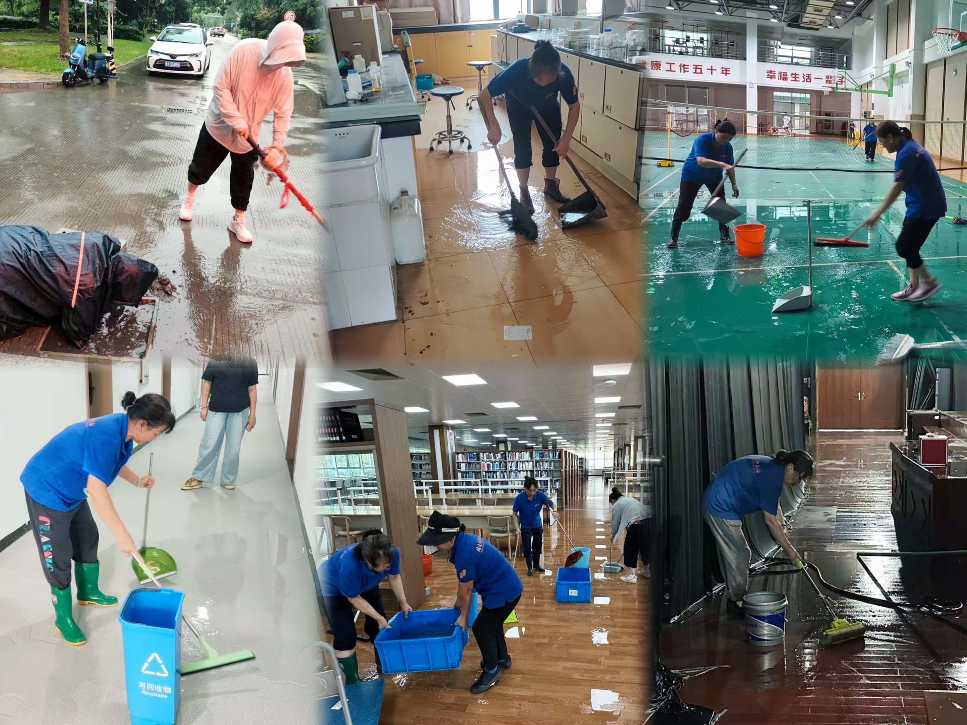 暑期设施高负荷运转,应急能力面临考验。面对图书馆、实验室、礼堂、体育场馆等多地发生的漏水险情,后勤物业均第一时间启动预案。保洁人员迅速清理积水,有效保护了馆藏书籍、实验设备等资产,将影响降至最低。