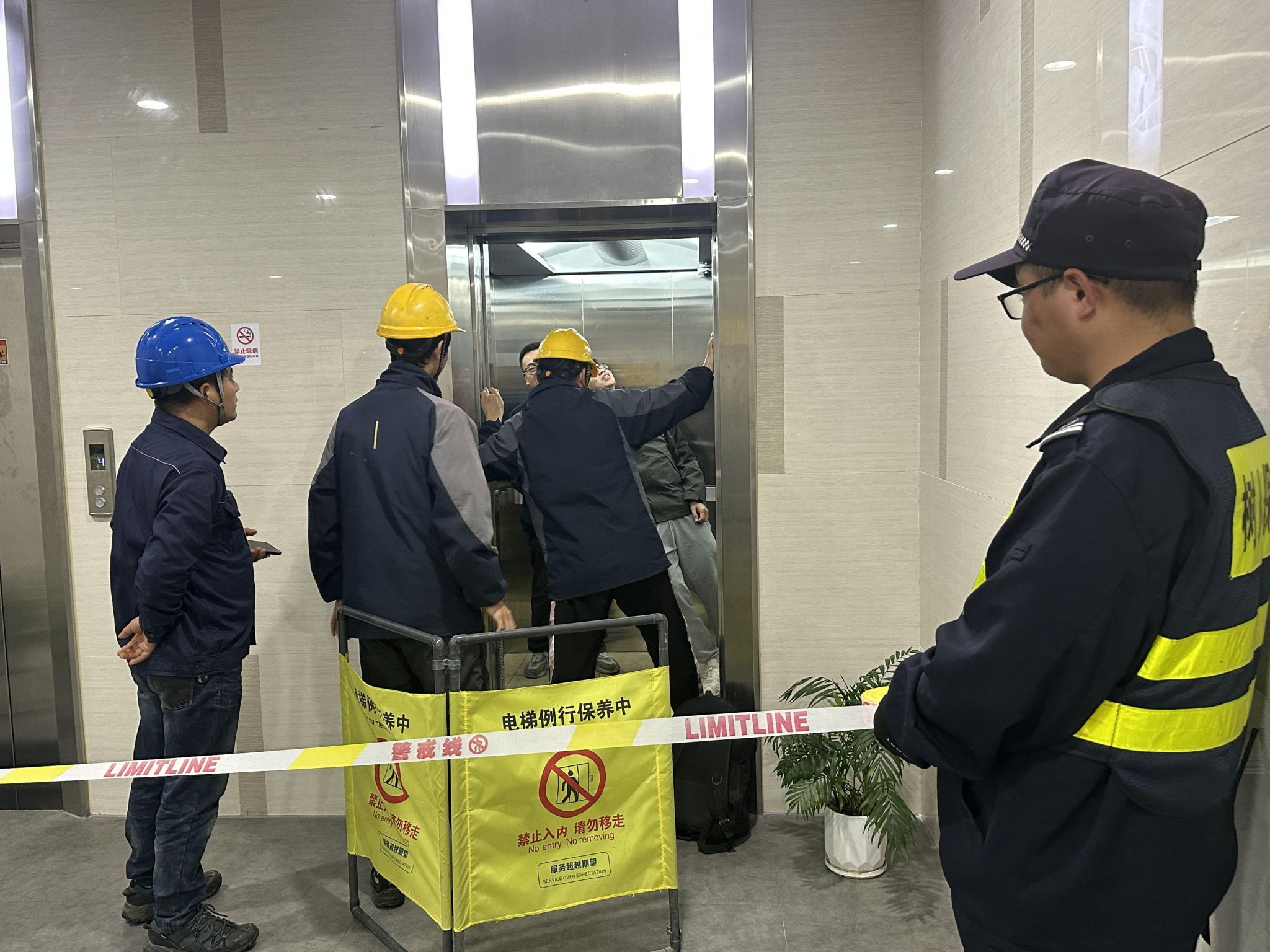 下午14时,演练模拟两名乘客乘坐电梯时突发故障被困场景。被困人员通过电梯紧急报警装置联系监控中心,水电中心电梯管理人员黄华明迅速响应安抚情绪并启动专项应急预案。保卫处快速赶赴现场设置警戒、维持秩序,电梯维保技术人员携带专业工具抵达故障点,经确认电梯位置后,以松闸方式将电梯平层,成功开门解救被困人员,全程规范有序,仅用时约6分钟。