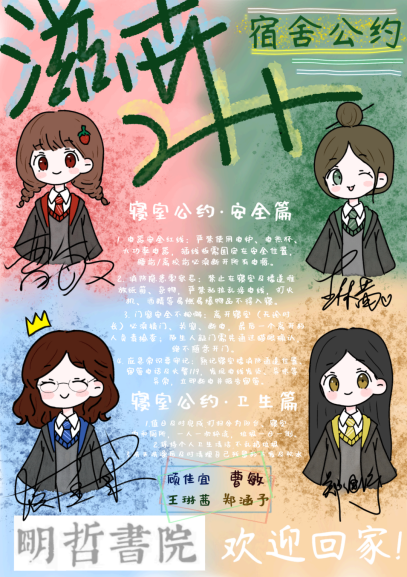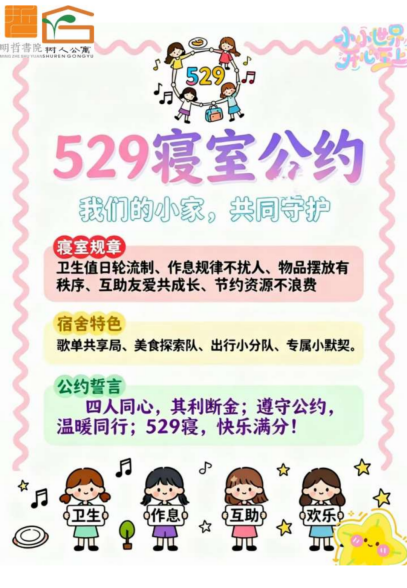 宿舍是学生在校生活的“小家”,是承载青春与成长的重要空间。作为学生生活保障与服务的主要部门,公寓服务中心始终致力于将“家”的温暖融入日常管理和服务中。本次与明哲书院联合发起宿舍公约设计大赛,旨在引导学生共同参与宿舍的民主管理,将安全、卫生、作息等规章制度内化为室友间共同的温情约定,从而激发学生的主人翁意识,为构建和谐融洽的一站式学生社区氛围奠定坚实基础。