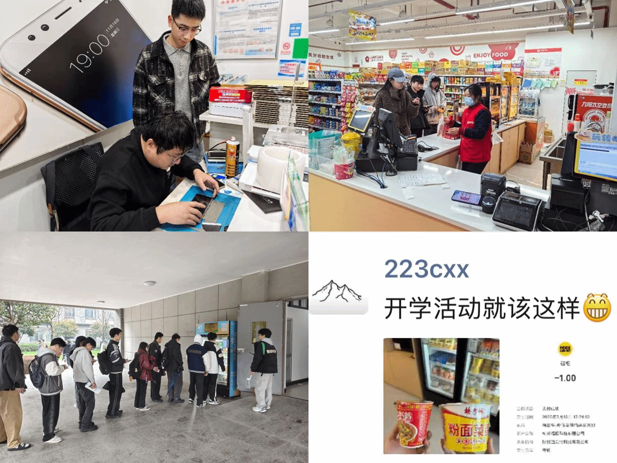 智能售货机变身"福利补给站",精选矿泉水、面包、纸巾等高频刚需商品,以1元特价限时供应。运维团队实施"动态补货机制",每日3次巡检确保48台设备不断档,活动期间服务5860人次,单日最高兑换量突破1200件。"下课刷瓶1元可乐,幸福感爆棚!,让师生随时随地享受到实实在在的优惠,感受到校园商贸服务的诚意。