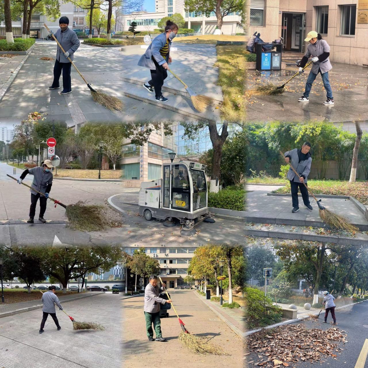 春日回暖,校园树木吐露新芽,但换季期间大量落叶飘落,易造成路面湿滑、排水堵塞等安全隐患。给师生出行带来不便。为切实筑牢校园安全防线,守护洁净优美的校园环境,物业会务中心迅速部署,全面开展两校区落叶季专项清理整治工作。